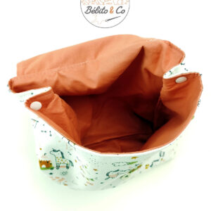 Il est composé de tissus coton et d’un tissu imperméable ainsi que 2 sangles réglables.